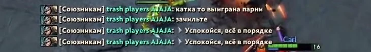 9. Керри команды Dire сильно флеймил Гпк и Сэйва за то, что те сдались раньше времени. Он даже посчитал, что они находятся в измененном состоянии сознания.