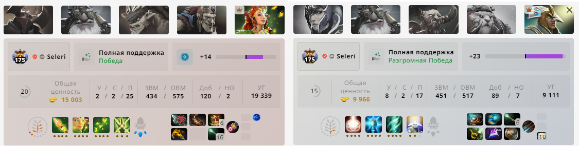 Рейтинг 3,6 против Heroic объясняется двукратным преимуществом по ассистам относительно среднего игрока на «титанах» и четырехкратным преимуществом по лечению. На второй карте Seleri дал намного больше убийств: 8 против 2,7 в среднем и перевес по показателям ассистов, смертей, GPM и XPM, лечения и урона.