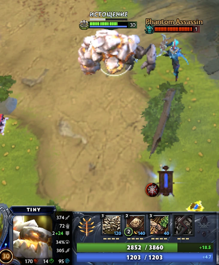 Ульт Тини – пассивка. Это давно всем известно, как бы не меняли героя. Логика сразу же подсказывает, что пассивка отключается истощением, что должно бы контрить каменного, только вот...