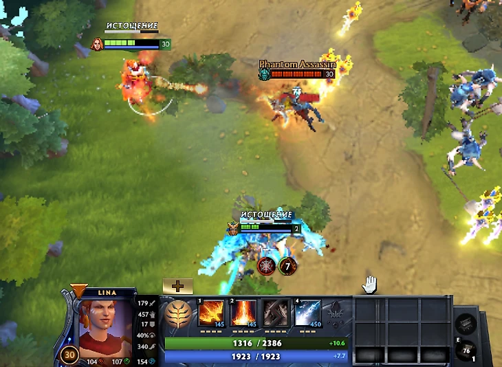 Причем даже если продержать истощение все время действия баффа лагуны, Лина после окончания баффа оставит себе 7 стаков еще на 13 секунд – и они так же будут действовать, независимо от наличия истощения.