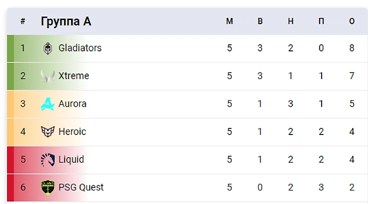По традиции пойдем по алфавиту и начнем с группы «А». Кто бы мог подумать, что первое место уйдет кому-то другому, а не Xtreme Gaming. Но реальность такова, что «гладиаторы» вскарабкались на вершину, опередив китайцев. Скажем больше - в очной встречи Quinn и компания одолели представителей Поднебесной. Неужели начинают набирать обороты перед приближающимся Riyadh Masters 2024?