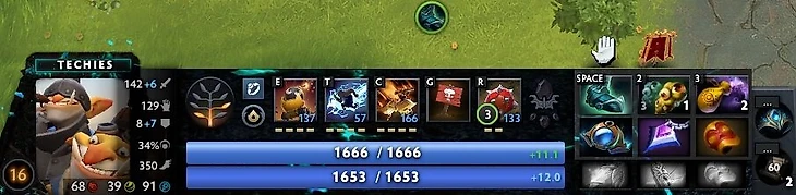 Все три (!) аспекта Течиса очень интересны. Но чаще всего в игре я вижу Spoon’s Stash, позволяющий использовать предметы из ранца, словно они находятся в основном инвентаре. Из этого легко извлечь огромное преимущество: например, в самом начале игры носить с собой кучу веток, ведь Techies – универсал. Помогает это и прожженным саппортам, у которых вечные проблемы со слотами из-за бесконечных сентрей, дастов, смоков, стиков или капель.