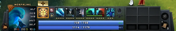 Сам по себе аспект тоже не очень понятный, даже если бы он правильно работал. Что с ним делать? Керри-Морф не может его брать, ведь ему важно получать и урон, и скорость атаки от ловкости. Какой-то оффлейн или саппорт-Морфлинг, который приходит перекаченным в силу? Много хп, большая тычка, а больше ничего и нет. Ни урона, ни скорости атаки, ни импакта от способностей, ни брони – ни-че-го.