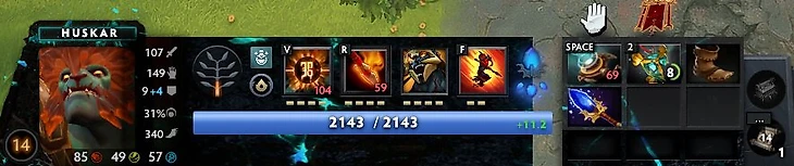 Несколько лет назад у Хускара была способность Inner Vitality, которую можно было использовать на союзников и исцелять их соответственно их основному атрибуту. И из-за нее Хускара иногда брали в качестве саппорта: покупали Урну, Меку, раскачивали первую способность. Но кроме как мемностью и бесполезностью эта сборка ничем особенно не запомнилась.