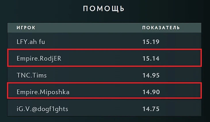 Саппорты «Империи» на TI7 были на высоте: Роджер закончил турнир на втором месте по количеству помощи в среднем за игру, а Мипошка – на 4-м.