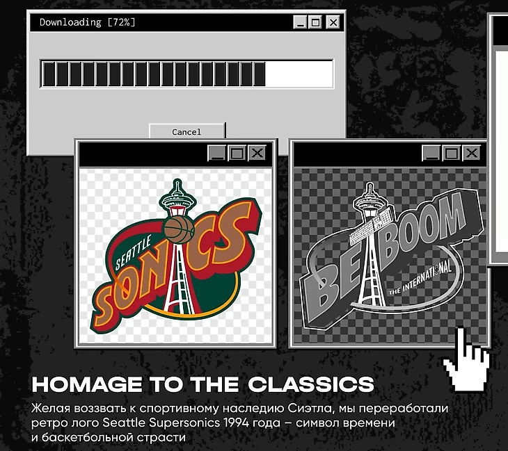 Логотип команды на форме тоже изменился: букву Т заменили на футуристичную башню Space Needle – символ Сиэтла, – которую перекрестили клавиатурой. А сам логотип отсылает нас к ретро-лого команды NBA Seattle Supersonics 1994 года. Там башня Space Needle с баскетбольным мячом обыгрывала букву i.