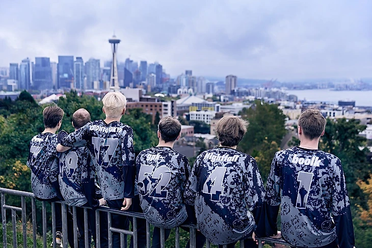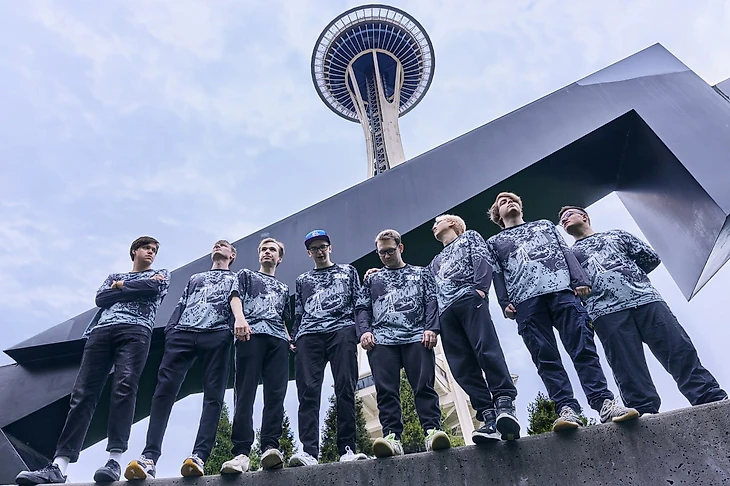 К The International A.D.E.D. снова сделали роскошную форму для парней, вдохновленную Сиэтлом и его культурой – со множеством отсылок к городу и пасхалками из Доты. В качестве фона на джерси используется пиксельный паттерн в стиле 8-битных артов с картой Доты.