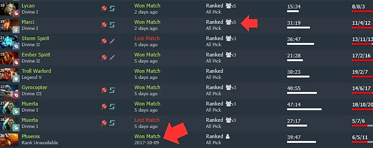 В среду 26 июня Головач нажал рекалибровку – на тот момент на его аккаунте было 4750 MMR. Однако пользователь с никнеймом ResistLife9685 обратил внимание, что все игры калибровки LenaGolovach провел в пати из пяти человек, и выложил пост на Reddit.
