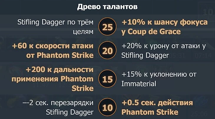 10-й уровень: «+0,5 секунд действия Phantom Strike»;