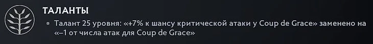 UPD: как верно заметил в комментариях Илья Ступак, то при выборе аспекта Methodical талант на 25-м уровне меняется с «+10% к шансу фокуса у Сoup de Grace» на «-1 от числа атак для Coup de Grace». Именно его берет Яторо.