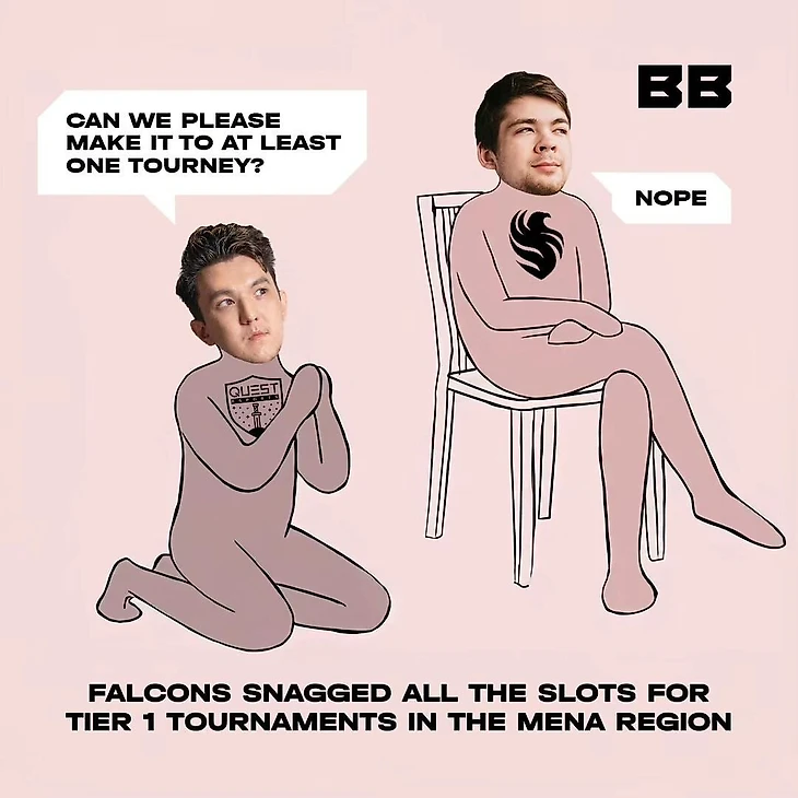 И Quest встретилась с Falcons в трех гранд-финалах квалификаций MENA из трех. И проиграла все, пропустив все важнейшие турниры первой половины года.