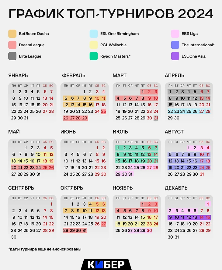 📌 Топ-турниры в Доте теперь идут почти бесконечно. Собрали полный календарь