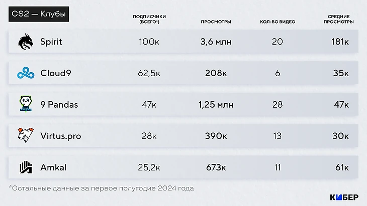 Как клубы чувствуют себя на YouTube: Spirit – топ-1 и в Доте, и CS
