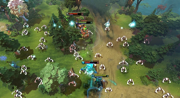 Если линия совсем простая, мы встаем перед нашей пачкой и пускаем March of the Machines на врагов. Пробьют нас слабо, зато обезопасим керри и отзоним сразу двух героев.