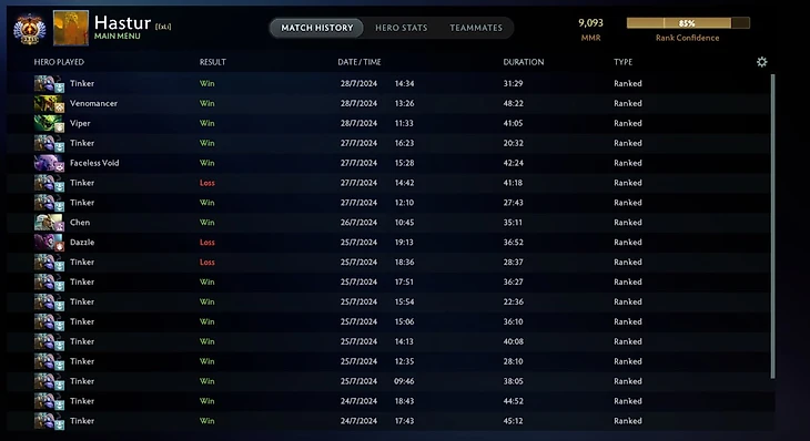 Аналитик Team Spirit Денис «sikle» Лерман недавно апнул 9 тысяч MMR. И статистика поражает – сделал он это на саппорт-Тинкере, проиграв всего пару матчей!