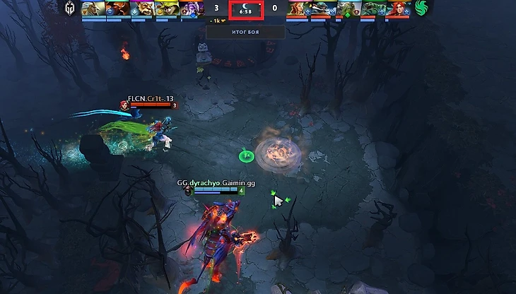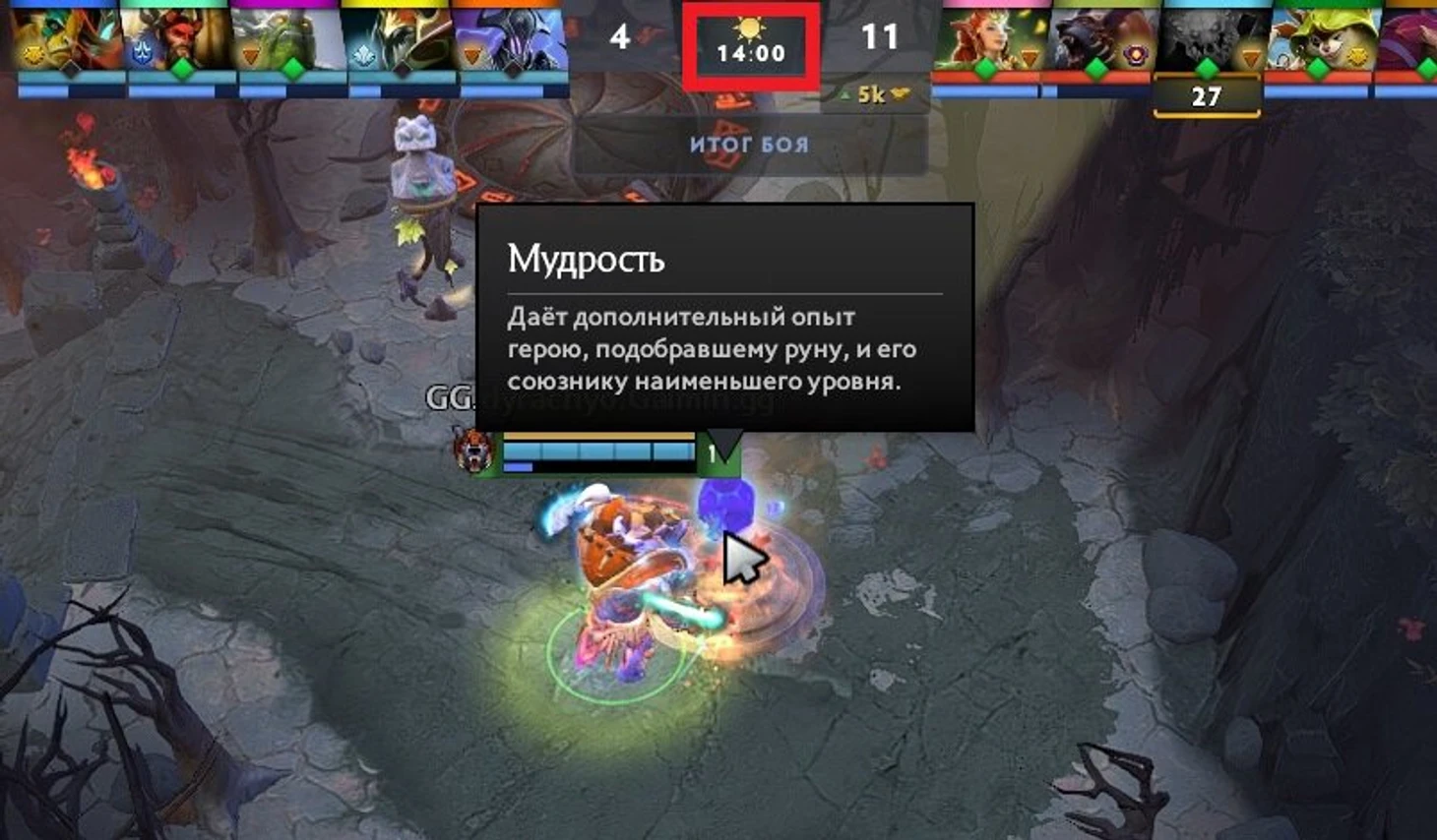 Кроме того, если свою руну Мудрости забрать некому, то Антон срочно за ней телепортируется даже без ресурсов. Даже на 14-й минуте!