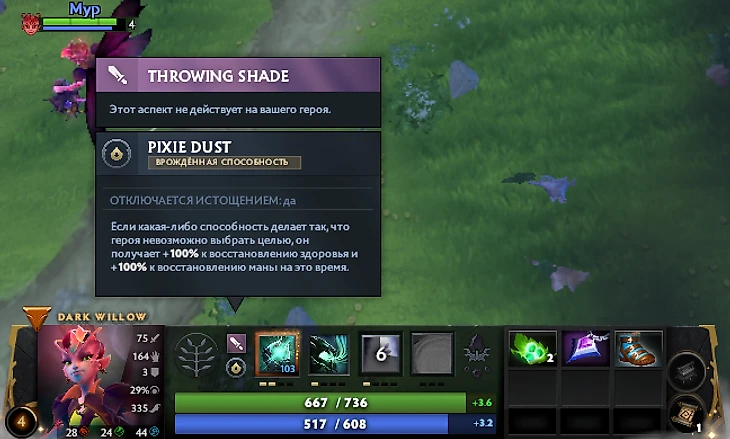 Забавно, что Dark Willow получала профит от своей врожденки, когда пряталась в Phase Shift Пака. И на том спасибо, что это корректно работает!