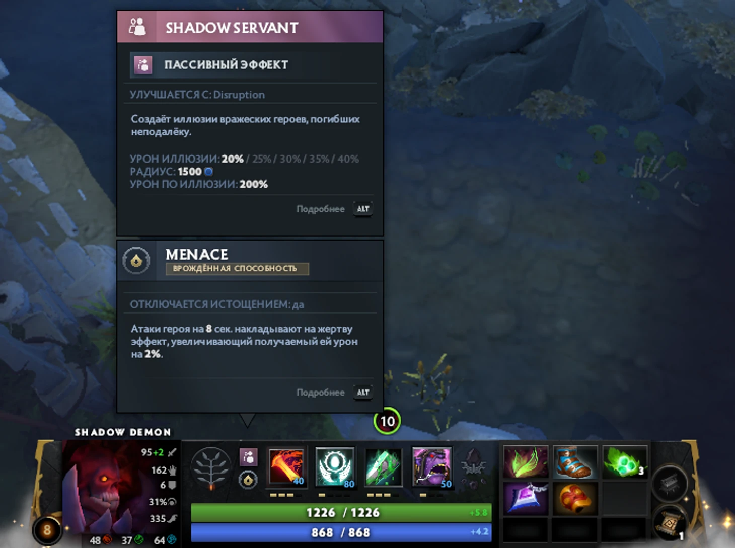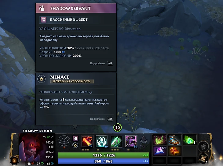 Уже на 8:30 у Шадоу Демона был годлайк. Сочетание ульты Алхимика, его пассивки и собственной врожденки – вот такие имбовые комбинации нужно собирать в Ability Draft!
