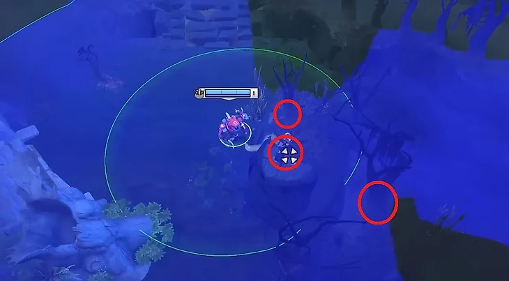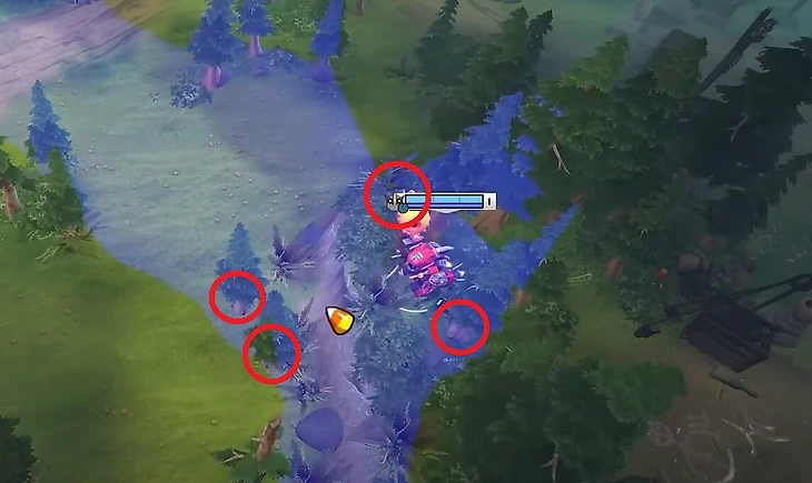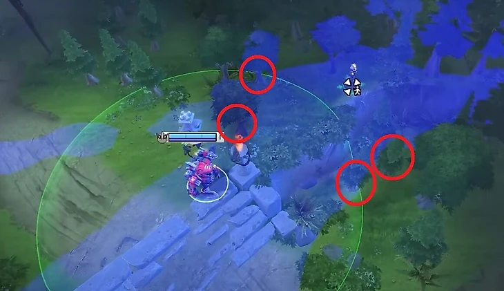 4. Вард на возвышенности возле верхней активной руны. Собирает огромное количество информации о перемещениях. Для сруба подойдет любое из трех деревьев. Однако этот вард легко обнаружить по срубленному дереву с дефолтной горочки неподалеку.