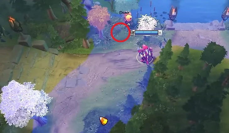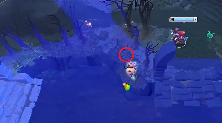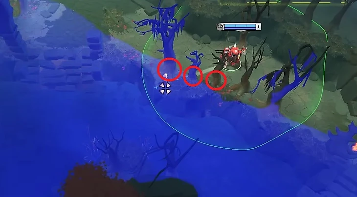 5. Вард на берегу реки в топе. Можно уничтожить оба дерева, чтобы видеть всю область вокруг.