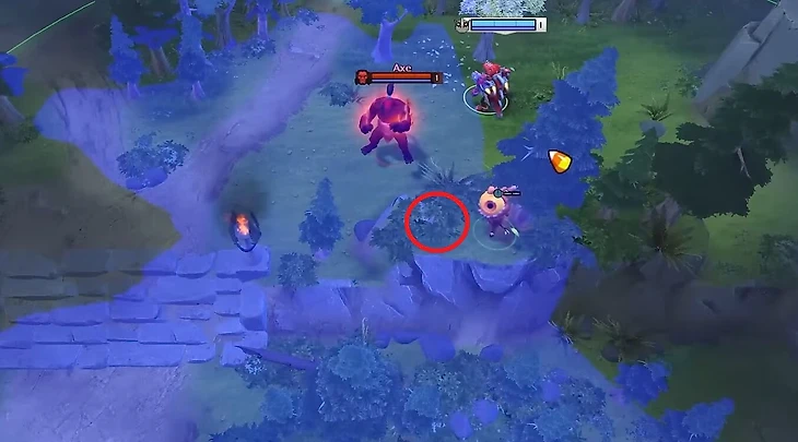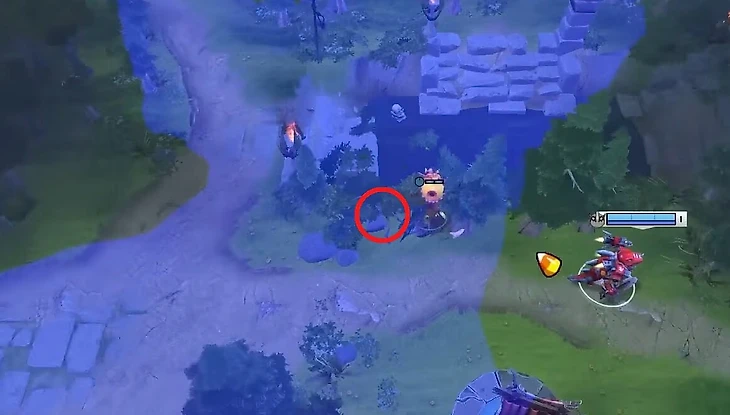 3. Если у противника еще не было обзора в области – он не знает, что там срубили дерево. Это сильно помогает. Вот отличный вард над Т2-вышкой Света на нижней линии, который покрывает всю область вокруг вышки и на возвышенности.