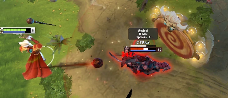 На линии первым скиллом очень удобно добивать ренджа, а также отпугивать соперников, чтобы денаить своих крипов. Если кор может добить ренджа сам – стараемся попадать кнутом по вражеским героям. С получением 2-го уровня это можно легко сделать, перед этим попав по врагу 3-м скиллом. Да, если вы еще не поняли, оба нюка героя – скиллшоты. Ты либо попадаешь, либо нет. Если у союзника на линии есть стан или замедление – прекрасно, можно делать фраги! С полученными сувенирами становимся еще сильнее и закрепляем преимущество на линии.