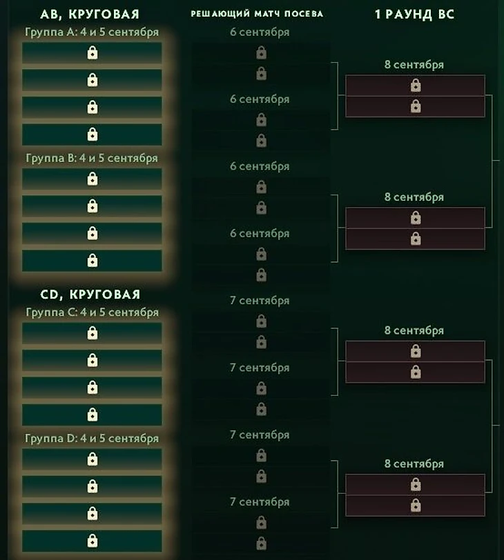 Групповой этап продлится два дня – с 4 по 5 сентября. С 6 по 10 сентября будет первая часть плей-офф. Оба этапа называются «Дорога на The International». Заключительный этап – непосредственно сам The International – пройдет с 13 по 15 сентября на арене со зрителями.