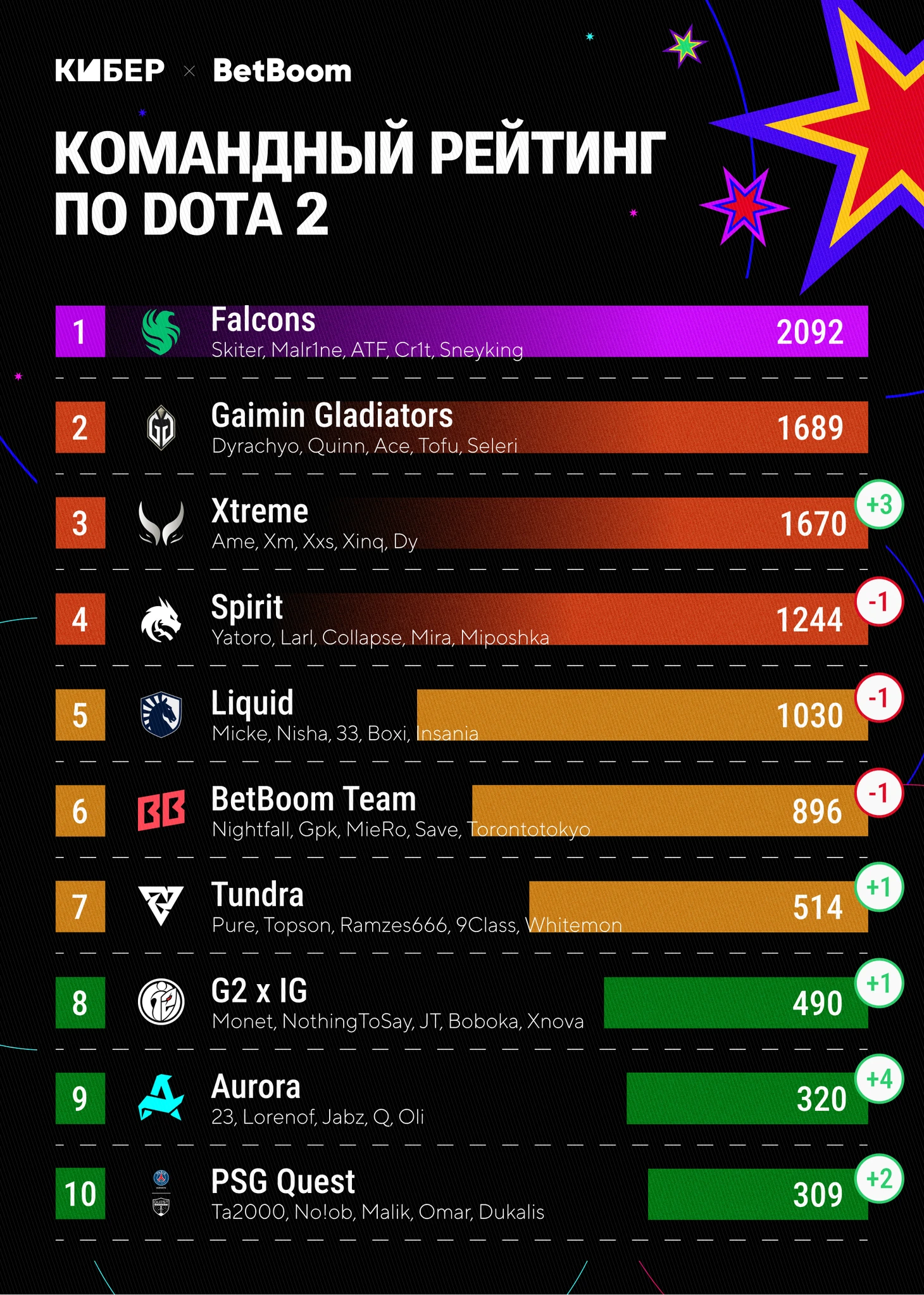 Командный рейтинг Кибера перед TI! Теперь с учетом замен в командах