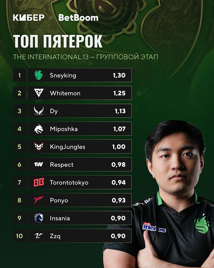 Закончилась групповая стадия The International 13! Команды провели по три матча в группе, кто-то попал в переигровки. Пока с турнира никто не вылетел, но уже можно сделать первые выводы по лучшим и худшим игрокам. Это особенно важно перед плей-офф, так как индивидуальный рейтинг позволяет найти претендентов на победу.