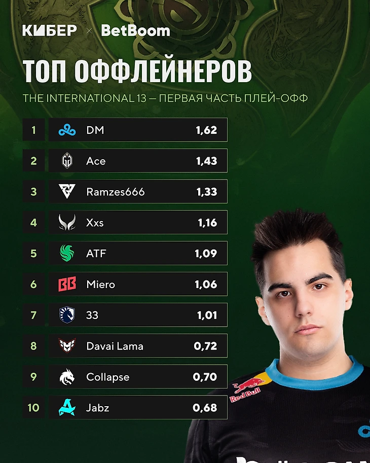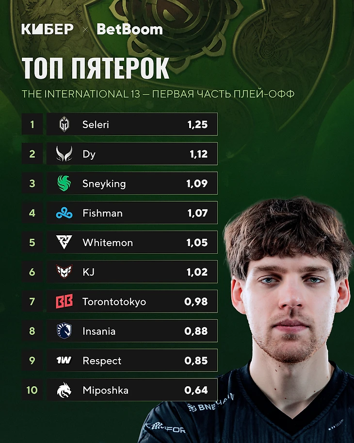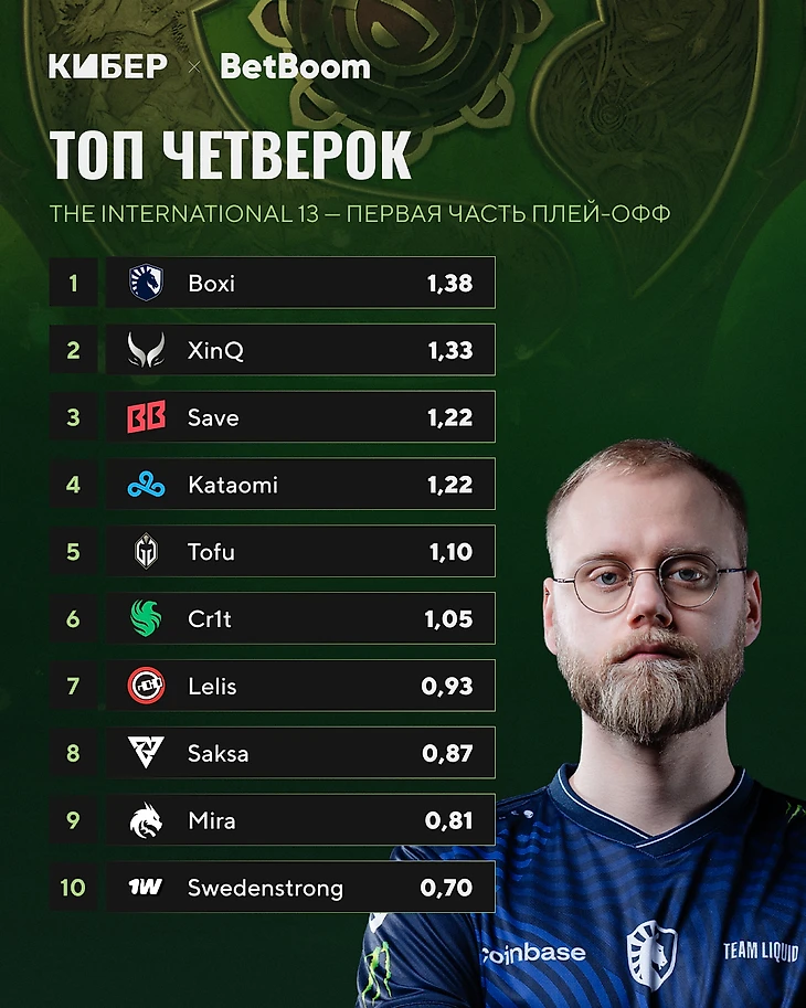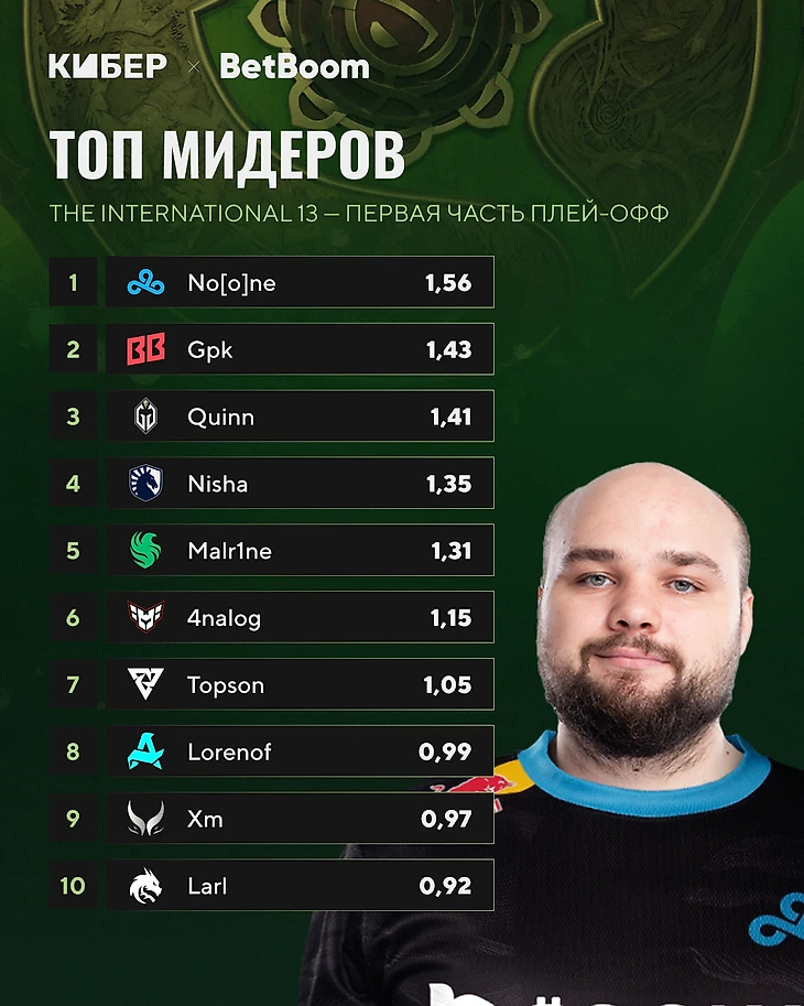 ● «В плей-офф мы играем лучше, чем в групповой стадии», – так Gpk объяснял преображение BetBoom Team. Если в группе в топ-5 попал только Save, а Gpk не набил даже единицу, то в плей-офф Данил уже стал вторым мидером турнира с рейтингом 1,43. Все его тиммейты вошли в топ-6 по ролям.