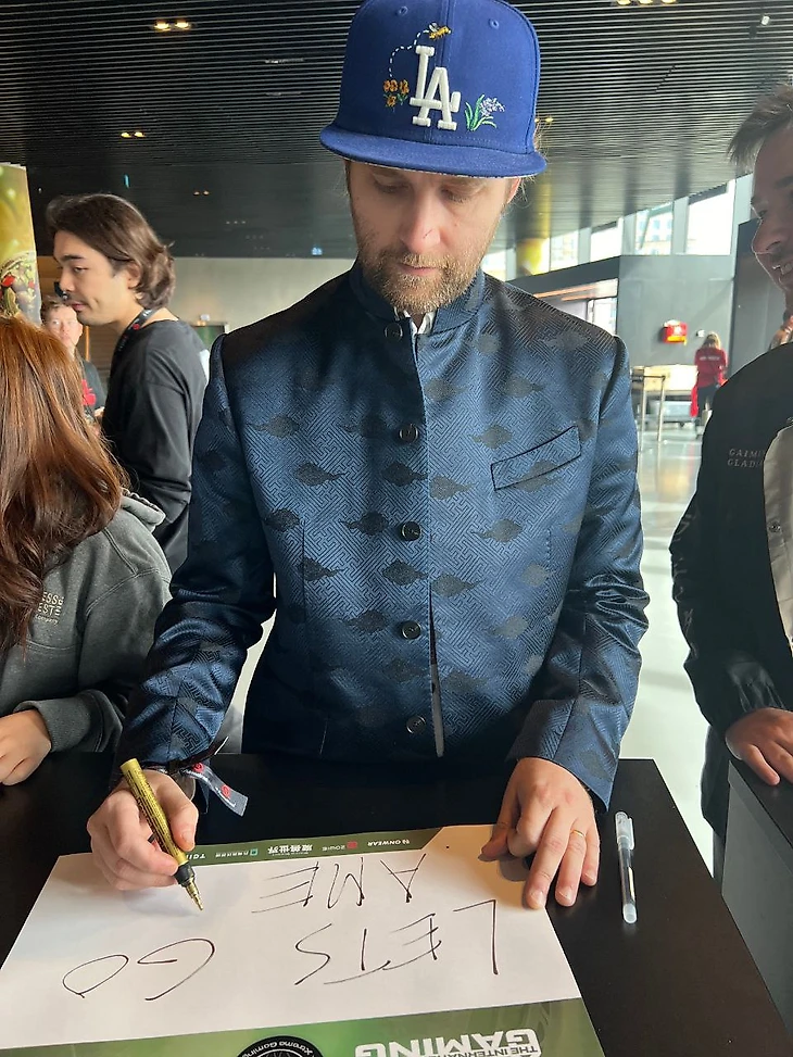Чемпион третьего Инта Loda подписывает плакат фаната. Поставил метку на Аме?