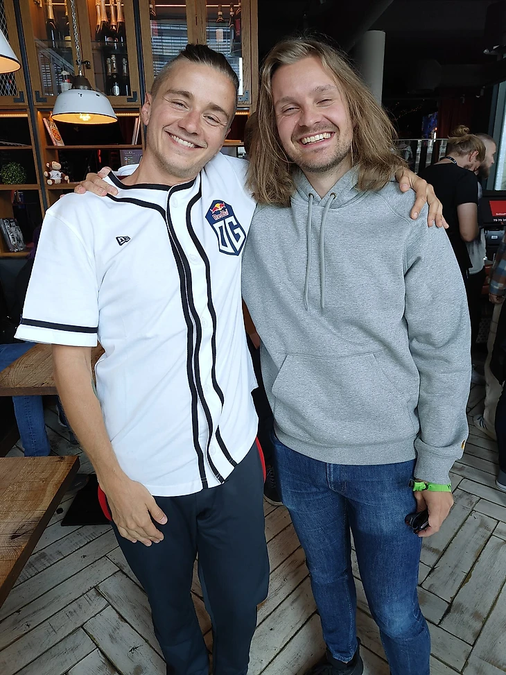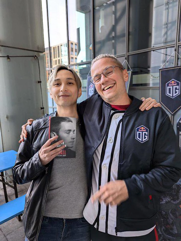 N0tail со своим давним тиммейтом SingSing. Стример держит книгу Йохана!