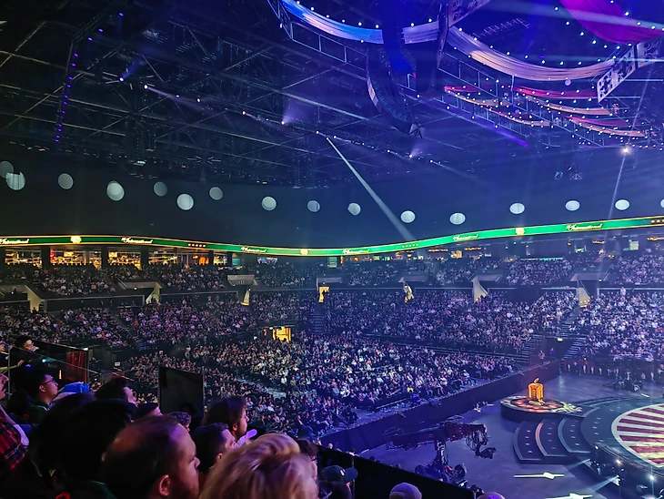 Каждому зрителю выдается бейдж и пин The International 2024. Каждый день! Привязав код с бейджа, можно получить специальную сокровищницу. А еще на каждое сиденье на арене кладут световой браслет, который мигает в перерывах между матчами или реагирует на какое-то событие в игре: забрали Рошана (красным или зеленым – в зависимости от стороны), пролилась первая кровь, набрали стрик и так далее.