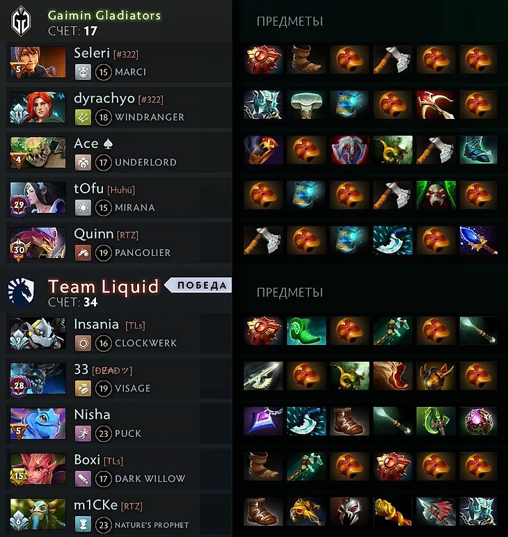 Турнир в Копенгагене можно смело назвать Интом Глейпнира. Предмет купили 145 раз за 122 матча – больше одного Глейпнира в среднем за игру! Такое ощущение, что ни одна карта не прошла без него.