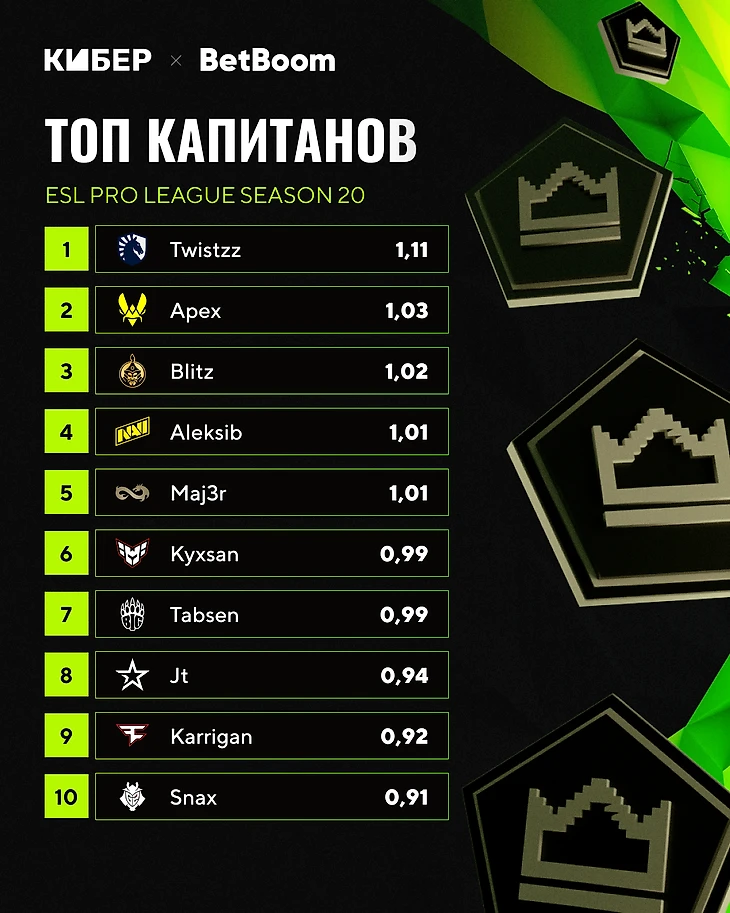 Примечание: снайперы-капитаны не учитываются в топе капитанов.