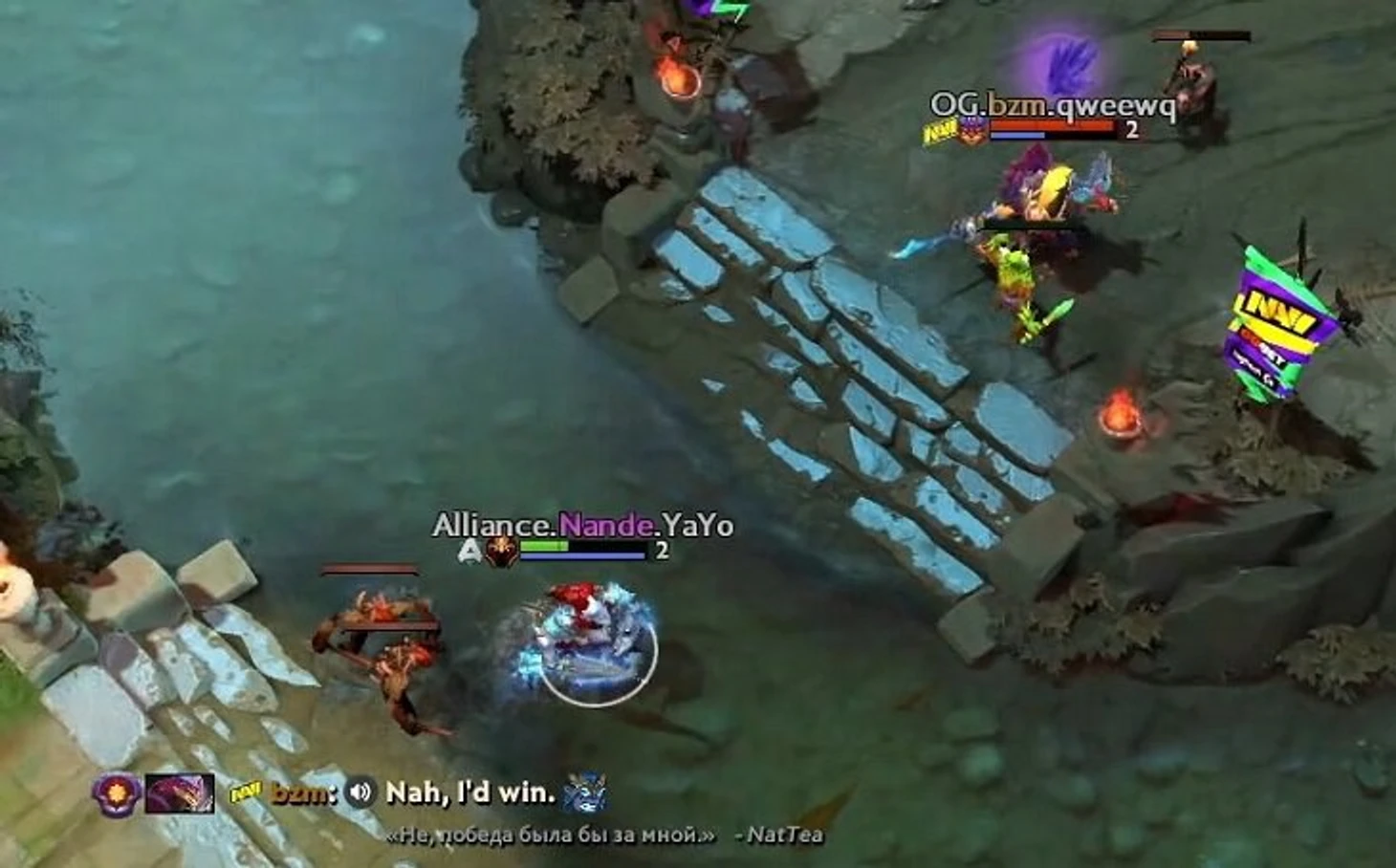 Самая пассивная и спокойная игра из трех – только 2-2 на 7-й минуте. NAVI активно играют под мид, чтобы контролировать руны для Bzm’а на Земле и играть от этого.