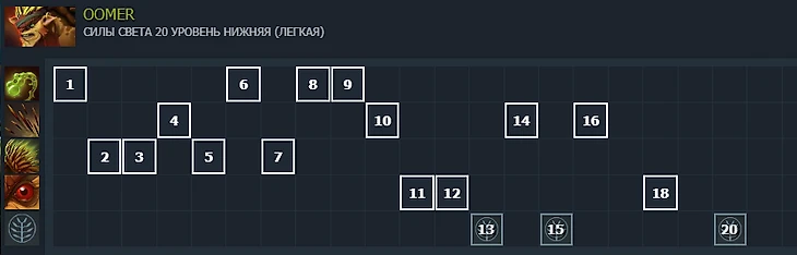 Дальше максим пассивку и первый скилл, ульта нам пока не особо нужна. На 11-м и 12-м уровне можем вкачать ее сразу в двоечку и начинать быстро бегать и пик-оффать.