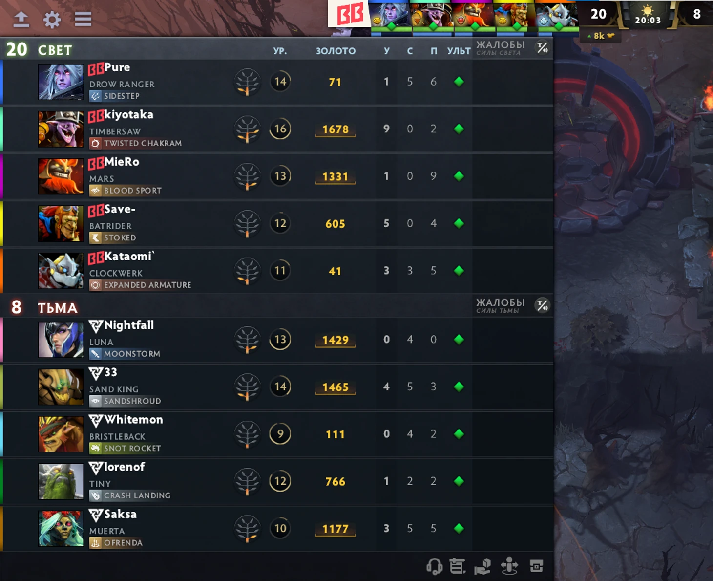 Хертек не соврал – Миеро с Сэйвом просто уничтожили сложную. Тем временем Кийотака переиграл Лоренофа в миде по крипстату, а проблемы были только на легкой. До 20-й минуты в BetBoom Team умирали только Pure и Kataomi. Тем не менее, закономерные 8 тысяч преимущества к 20:00.