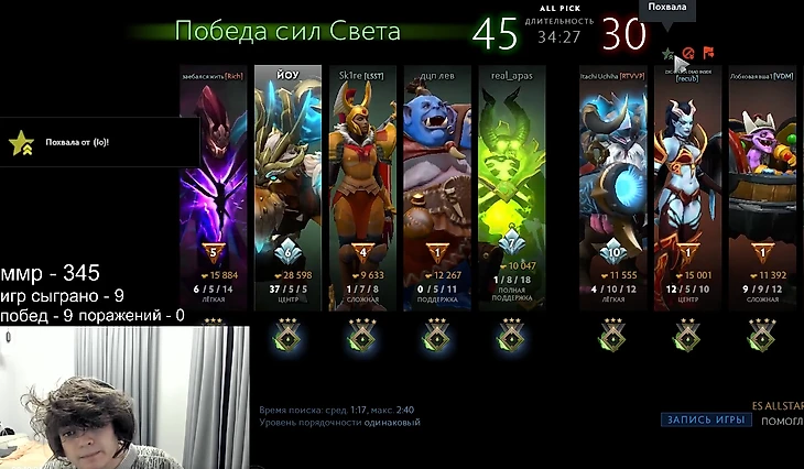 За 13 часов стрима Протасеня сыграл 19 матчей, из которых проиграл три (поражения он почему-то не записывал). В общей сложности – 600 ММР. Ранг «Титан» начинается с 5600 – такими темпами за 10 дней можно не успеть!