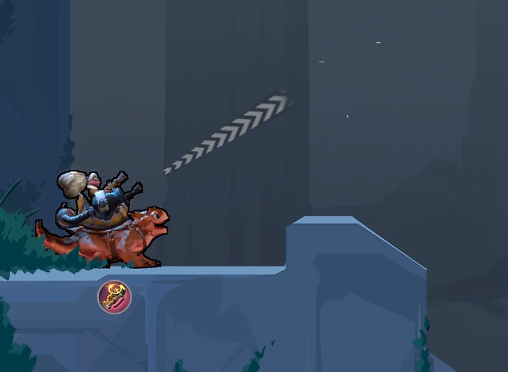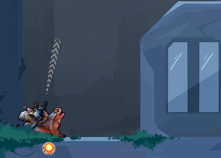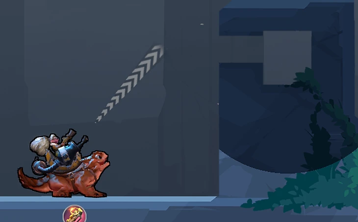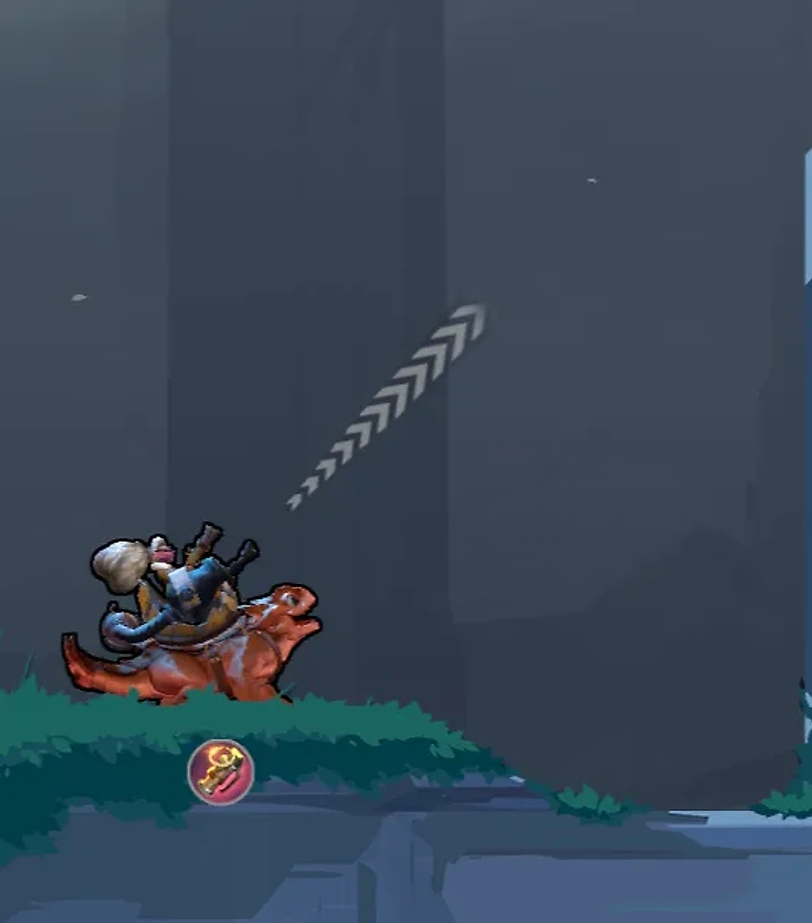 Под таким углом заряжаем 2 гранаты, когда самый правый крип побежит к крипу-магу. Так первая граната взорвет двух на крыше, а вторая залетит аккурат к закрытому крипу. Остается аккуратно навесить на самого ближнего крипа.