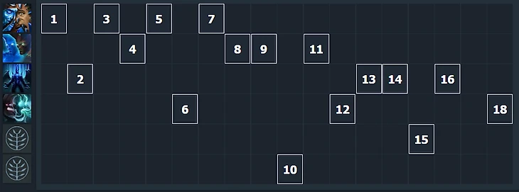 Далее – Яша и Шард для ускорения фарма и ради возможности драться без Меты. Апаем Яшу в Манту и выходим в полноценного кора – БКБ, Скади, Бладторн. Стандартный скиллбилд выглядит вот так: максим Reflection для прессинга на линии, затем иллюзию для фарма.