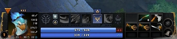 А, еще на Рошана почему-то действует стак урона от Kazurai Katana, поэтому Kez во всех ключевых драках присутствует с Аегисом. На иллюзии от Manta тоже работают стаки урона, пусть и слабее, но это все равно не шутки, ведь восстановление здоровья даже иллюзия всегда уменьшает на 35%.