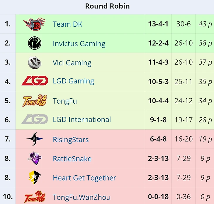 Собранные за месяц до турнира DK уверенно выиграли группу, остальные четыре гранда в плотной борьбе разделили места со второго по пятое, LGD International не смогла дать настоящий бой грандам, но была на голову выше четырех аутсайдеров, которые покинули турнир. Особенно выделяется выступление второго состава TongFu, 0 побед при 36 поражениях. Примечательно, что их мидером был Moogy (a.k.a uuu9), который спустя 4 года дойдет до финала TI7, а еще спустя 4 года будет забанен за 322.
