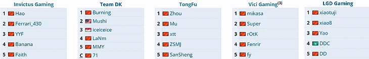 Первое, третье, четвертое, пятое-шестое, и седьмое-восьмое места. При этом каждый вылет китайской команды был исключительно от другой китайской команды. Казалось ,что «поднебесная» захватила игру, и будет доминировать долгие годы, но холодный душ ждал китайцев уже через год. На TI3 ни одна китайская команда не смогла попасть в топ 3, лишь четвертое, пятое и шестое места. После такого провала происходит первая волна решафлов, в ходе которой получаем пять главных команд «поднебесной»: