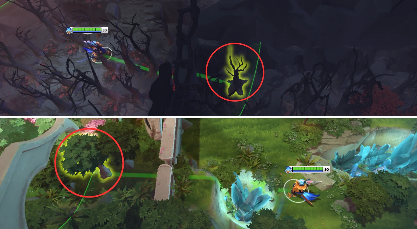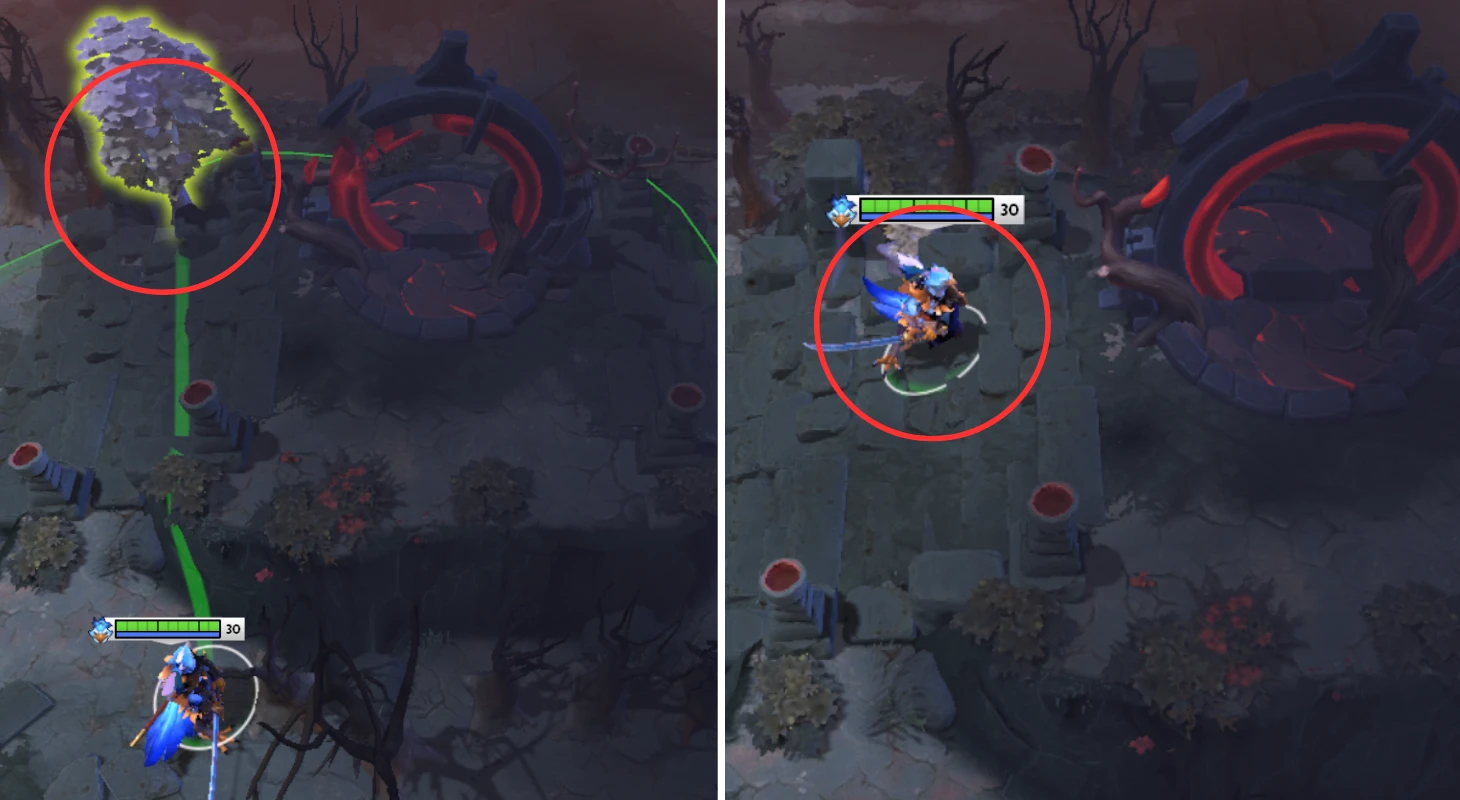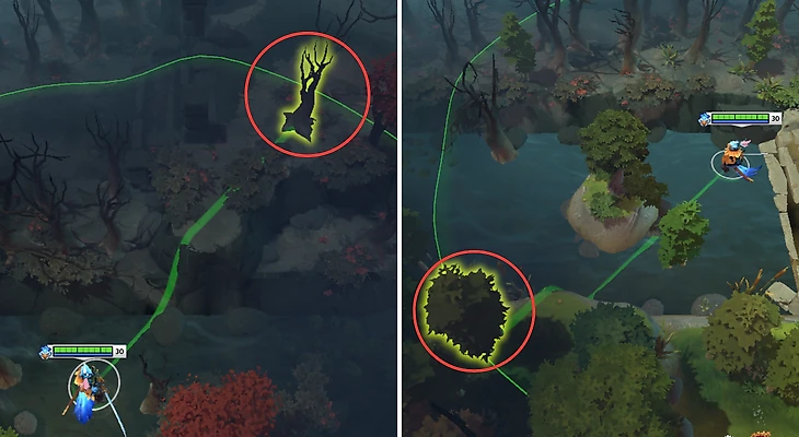 ● Есть еще пара деревьев, но лучше потренироваться в лобби – порой герой не долетает, если кастануть с плохой точки.