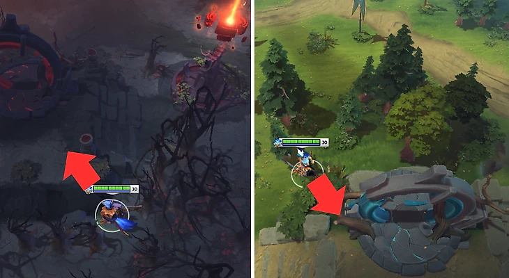 ● C Echo Slash удобнее двигаться к порталам. Держите две самые удобные точки – подходим и просто жмем первую способность: