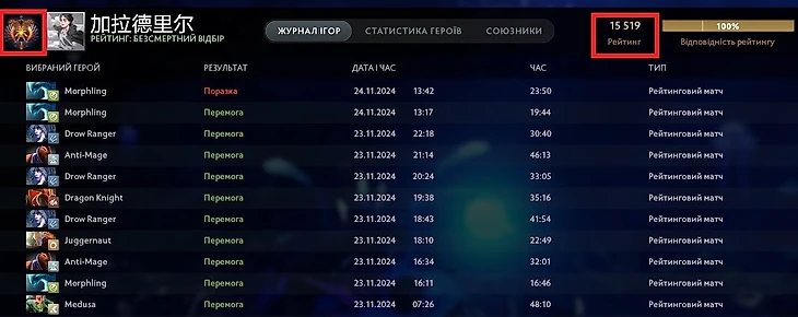 Двукратный чемпион The International Илья «Yatoro» Мулярчук снова подтвердил звание лучшего керри. 27 ноября он стал первым в мире игроком с 16 000 MMR. Илья поделился скриншотом в телеграме.