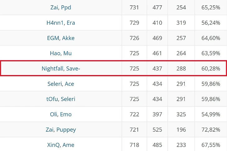 Для сравнения: столько же карт сыграли, например, Seleri и Ace, китайские легенды еще первой Доты Hao и Mu, а на одну больше – чемпионы TI3 EGM и Akke.