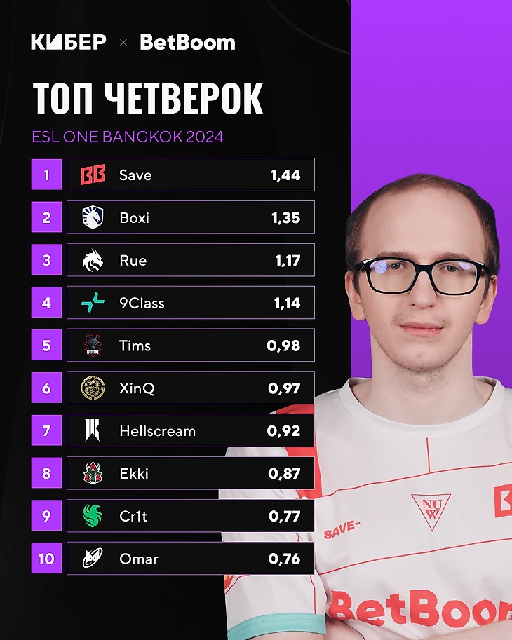 ● Сэйв – лучшая четверка турнира. Прямо сейчас Сэйва можно считать сильнейшим игроком команды, его тиммейты попали лишь в пятерку лучших, хотя BB Team дошла до топ-3 турнира.