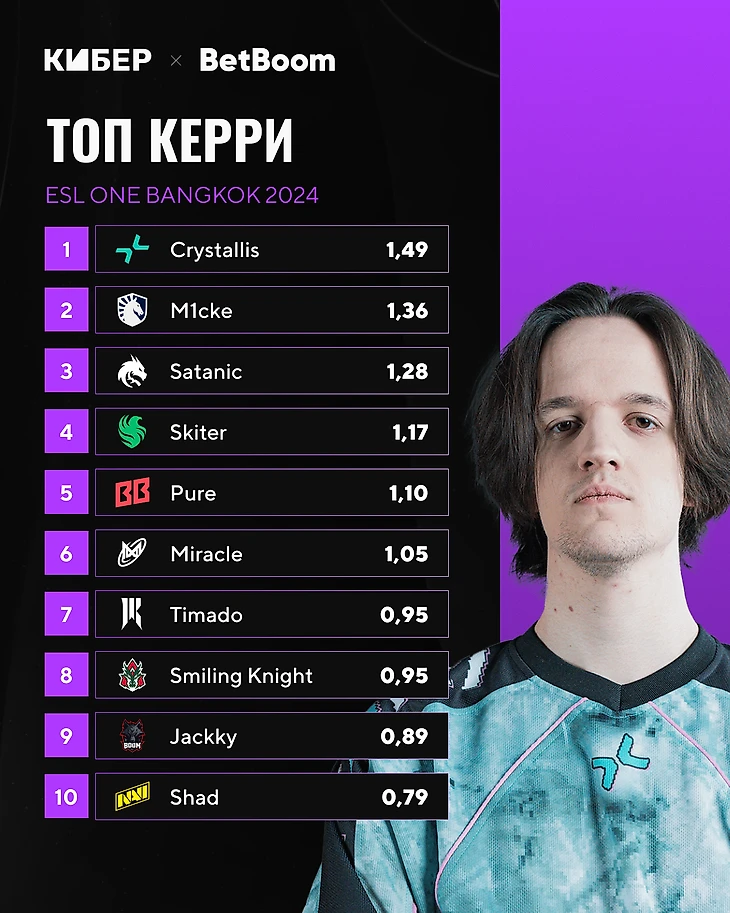 ● Несмотря на 4-е место, все игроки Spirit попали в топ-3. Лучший рейтинг у Сатаника – 1,28, а Малик занял топ-2 среди оффлейнеров с рейтингом 1,16.